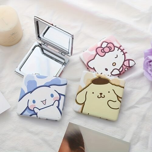 1pc Cute Anime Girls Makeup Mirror – Pastel Pink, White, Blue, Yellow, Brown, with Hearts & Characters – Portable Folding Compact Mirror for Girls, Teens, Anime Fans – Birthday Party, Everyday Use – No Battery Needed – Travel-Friendly Decoration – Dual-Sided Design with Glass Surface & Polished Finish – Compact & Lightweight – Cute Anime Characters (Hello, Kawaii) – Ideal Gift for Girls & Teens