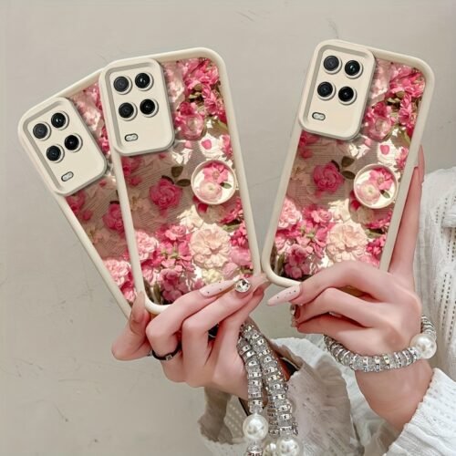 1pc Love Graffiti Anti-fall Mobile Phone Case Carrying Flower Beads Lanyard Suitable for iPhone15promax/15pro/14plus/13/12/11 Mobile Phone Case Mobile Phone Accessories