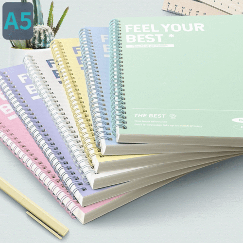 6pcs Set: 1 Spiral Notebook + 5 Black Pens, Minimalist Portable A5 Hardcover Coil-Bound Journal with Tear-Away Sheets (Horizontal & Vertical Lines), Perfect for Office or School Supplies and Christmas Gifts – Cute Design