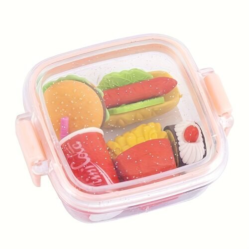 4pcs Bento Box Dessert Makeup Eraser Set In Various Colors, Suitable for School Classroom, Home or Office (Random Color)