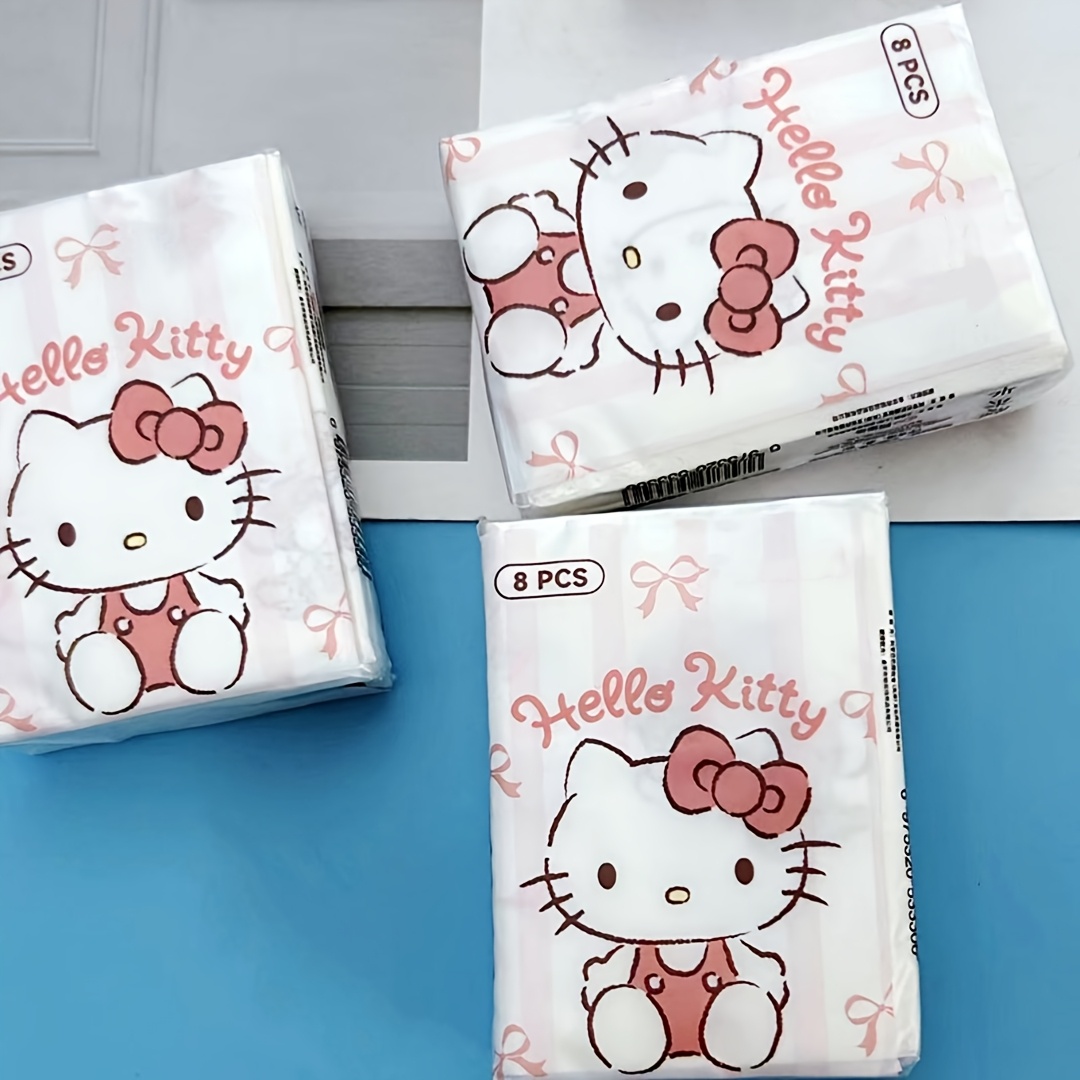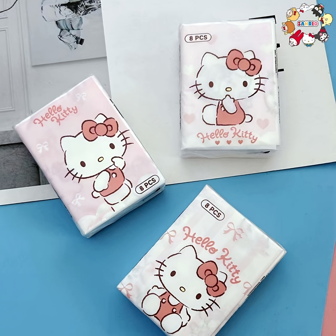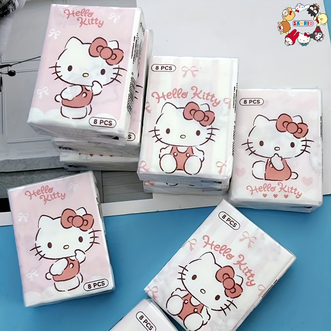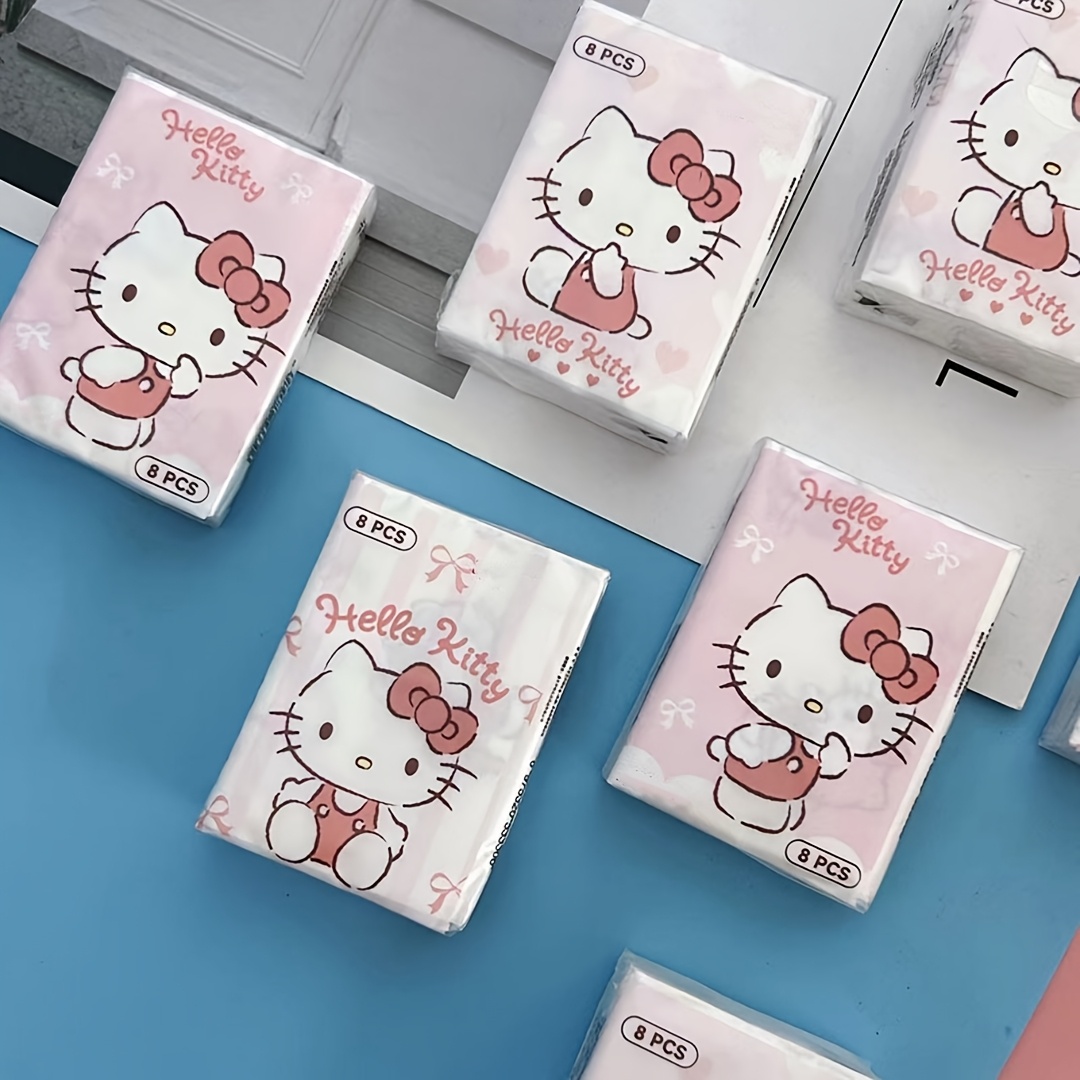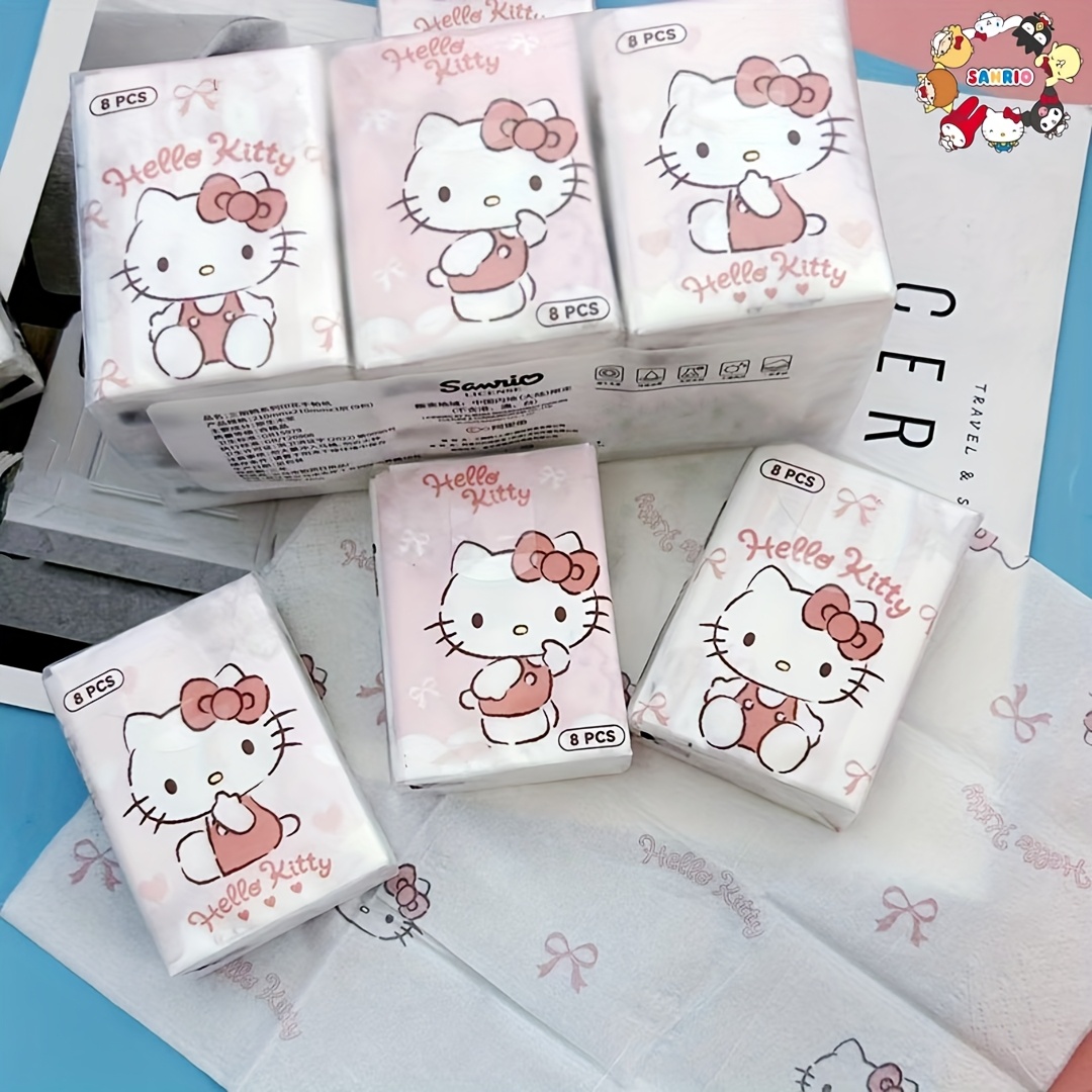 1/9 Pack Sanrio for hello kitty Tissues – Cute Pink & White Design with Hearts, 8pcs Travel-Sized Portable Facial Tissues for Home, Kitchen, Outdoor, and On-the-Go Use, Kitchen Essentials, Playful Design, Soft Texture