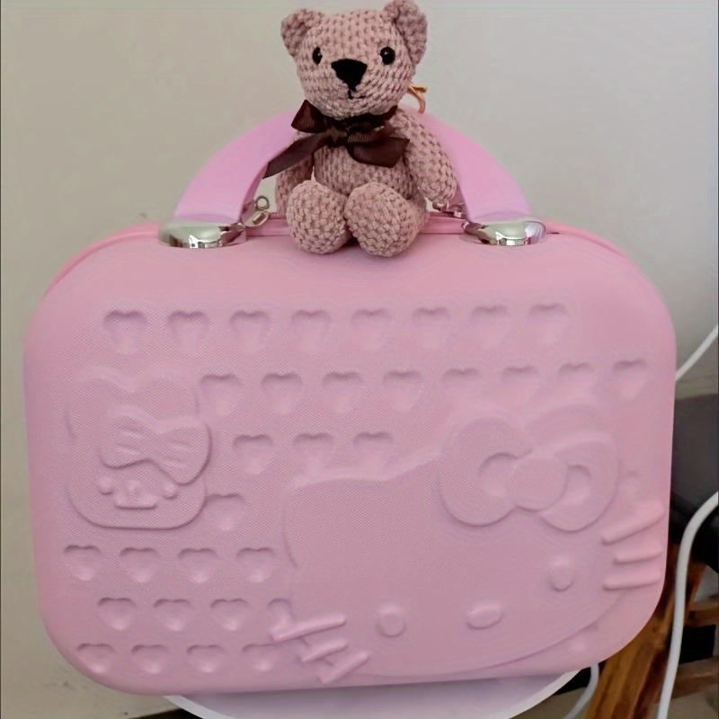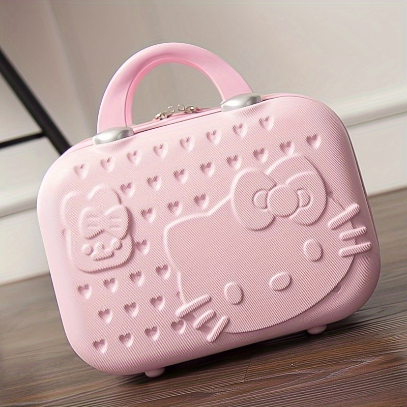 14 Inch Sandwich Cat Design Multifunctional Trolley Luggage Compartment – Grease-Resistant Makeup Travel Case with 4 Wheels, Pink Suitcase for Cosmetics Storage, Unisex for Men & Women, Luggage for Travel, Playful Aesthetic, Easygrip Handle