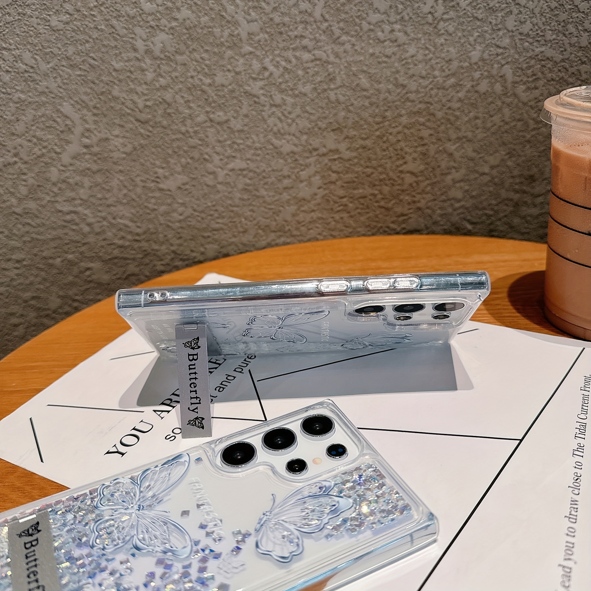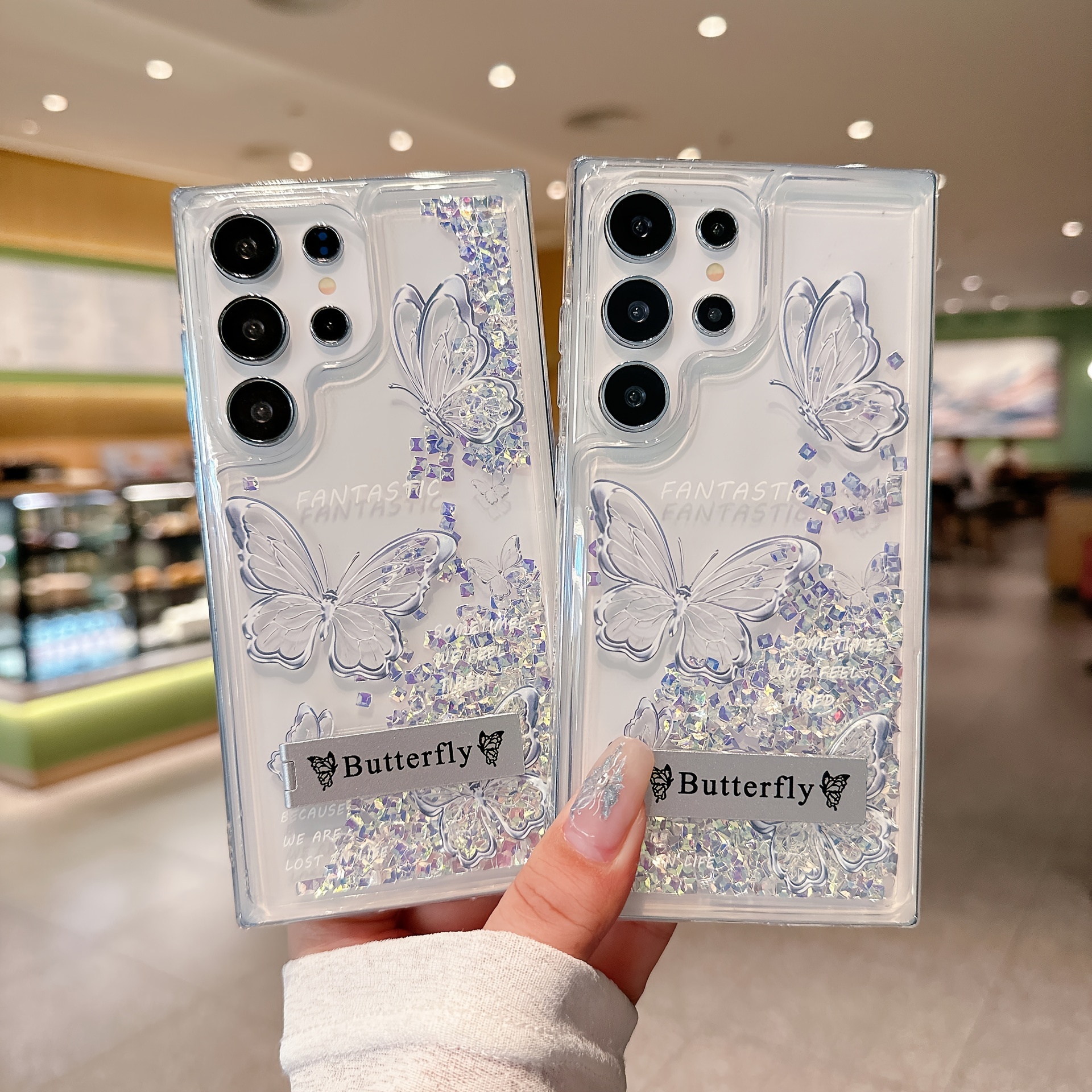 1pc Sparkling Butterfly Glitter Phone Case Compatible with Samsung Galaxy S25 S24 S23 S22 Plus Ultra, Featuring a Stand, Perfect As a Christmas Gift.