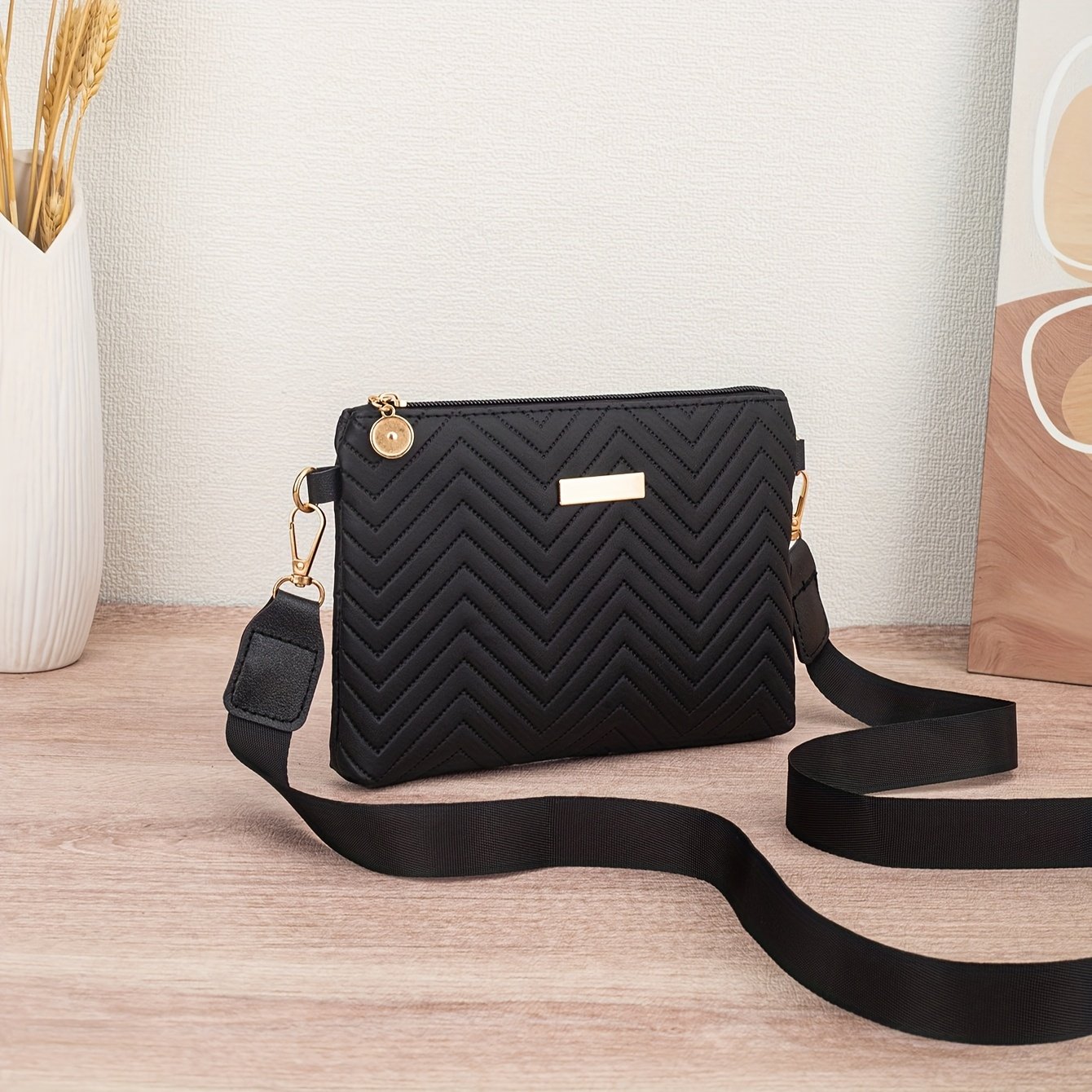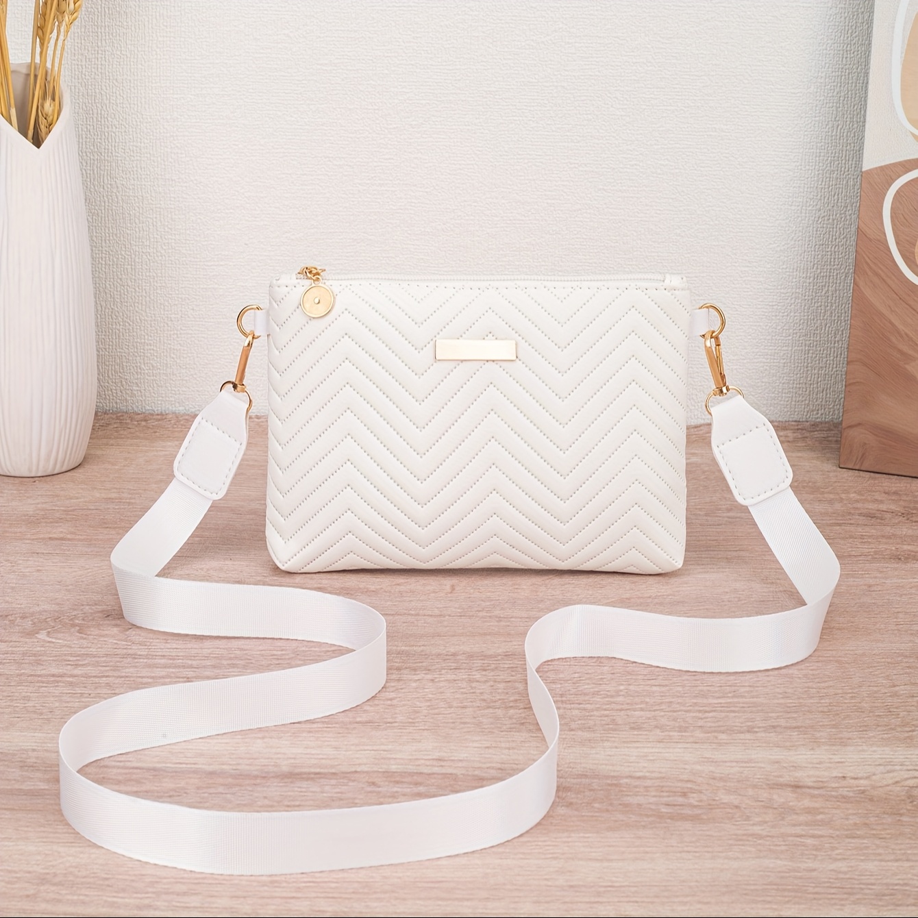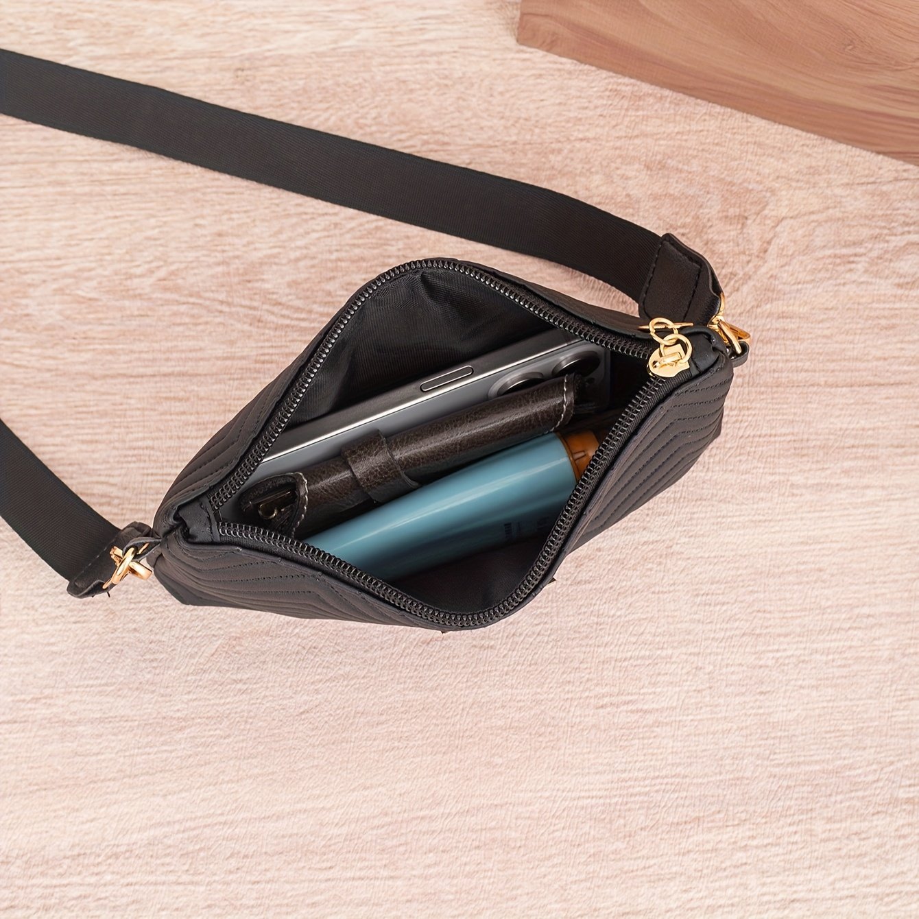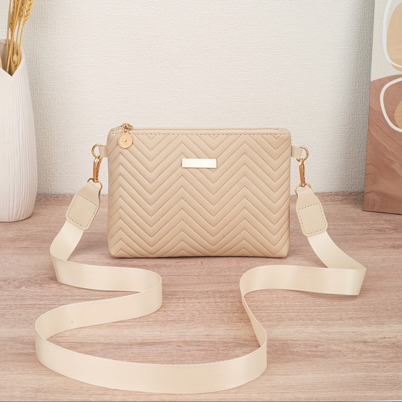 2025 New Women’S V-Text Quilted Crossbody Bag – Detachable Shoulder Strap Zipper Closure, Beige/Black, Fashionable Handbag for Casual and Formal Occasions, Multi-Functional Accessory with Polyester Lining and Golden Hardware, Suitable for All Four Seasons