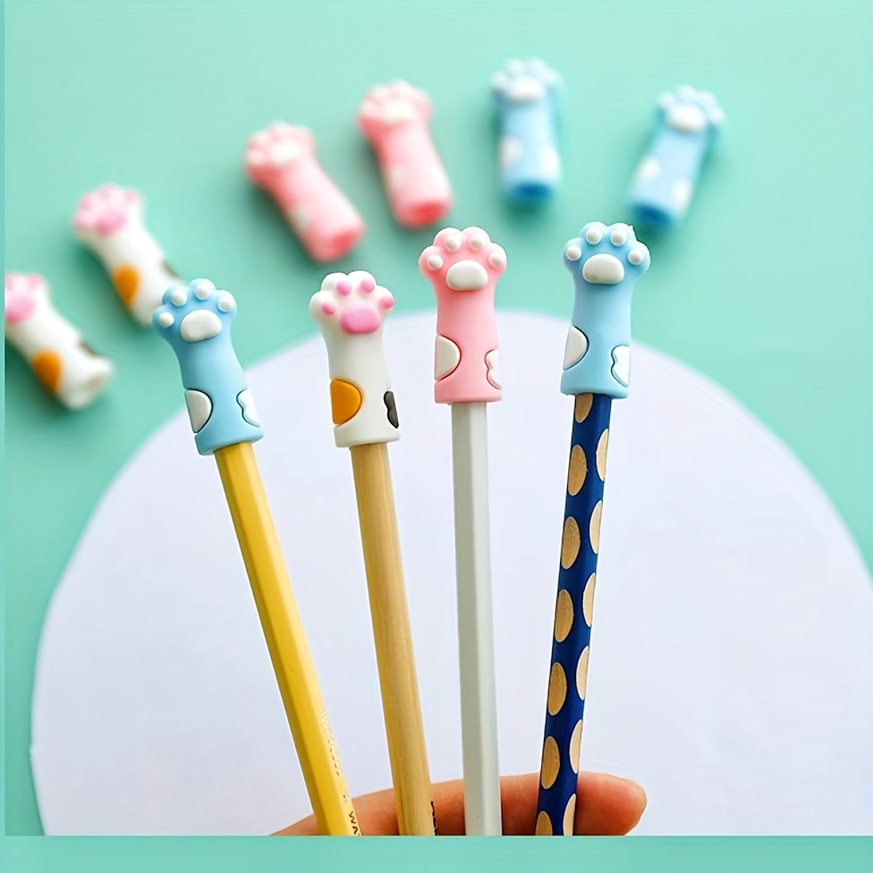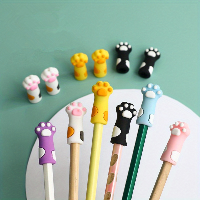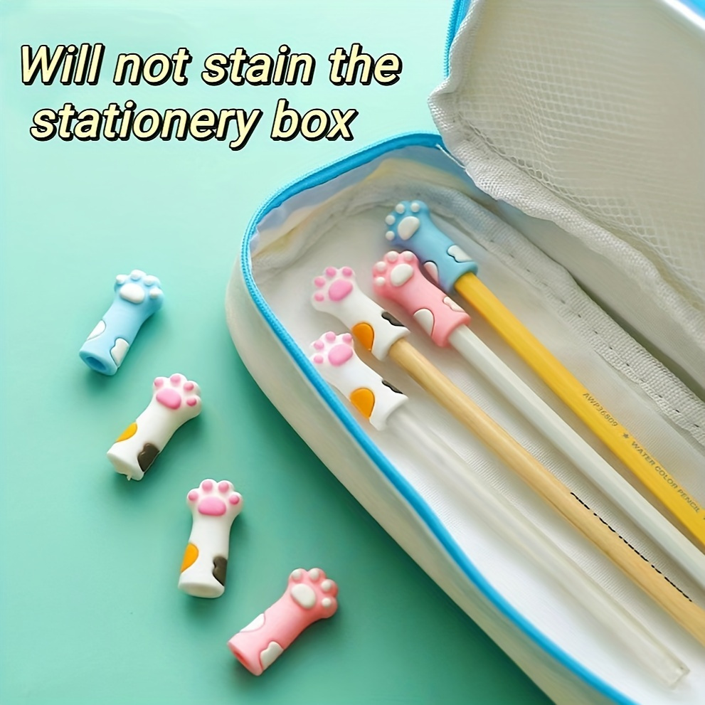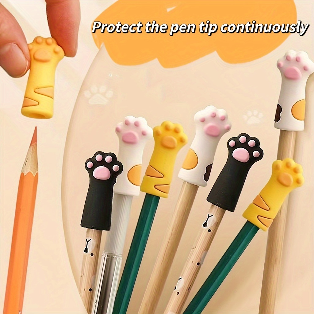 3/5pcs, Cute Cat Paw Pencil Caps, Cartoon Silicone Tip Protection Covers, Soft Pencil Tip Covers, Office Stationery, Pocket Pen Holder