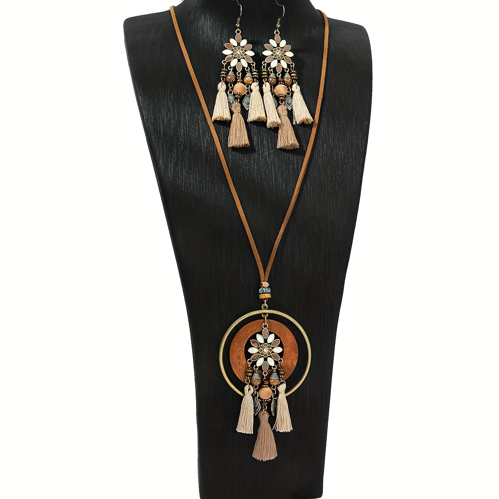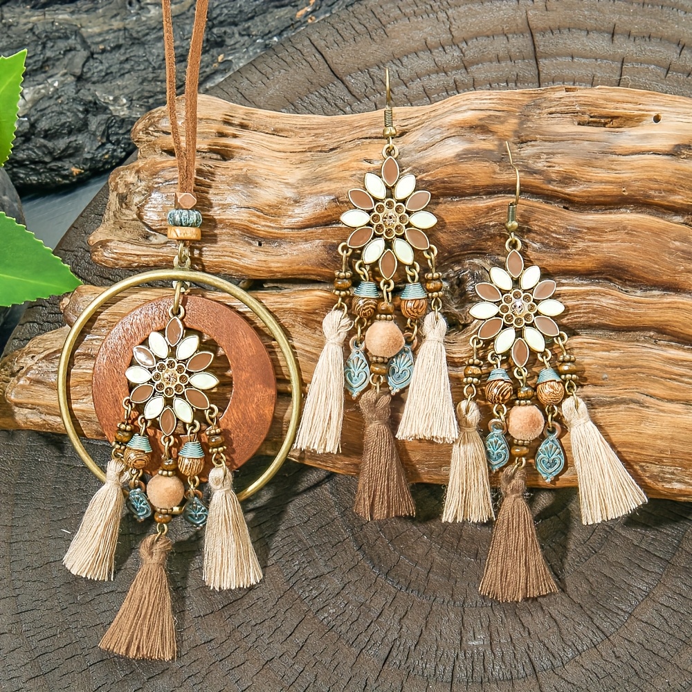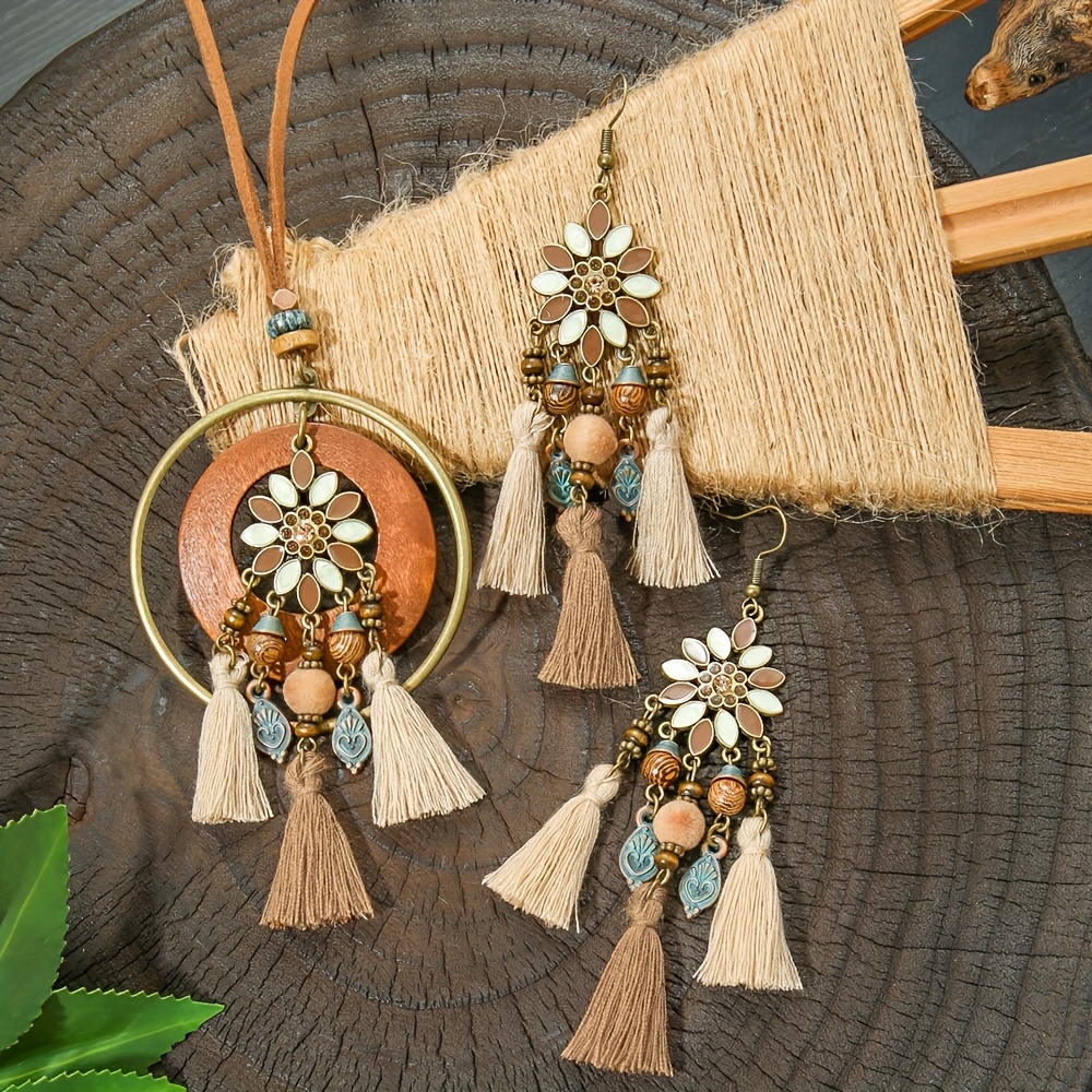 3pcs Boho Vacation Women’S Fashion Jewelry Set, Cute, Glass Mosaic Zinc Alloy Copper Plated, with Earrings + Necklace