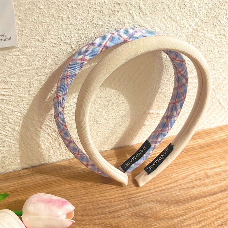62pcs/1pc,Women’sPlaidSolidColorHeadbandsSweetPink,StylishPolyesterHairAccessoriesTravel,Vacations,DailyWear