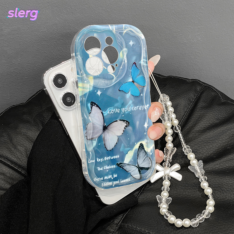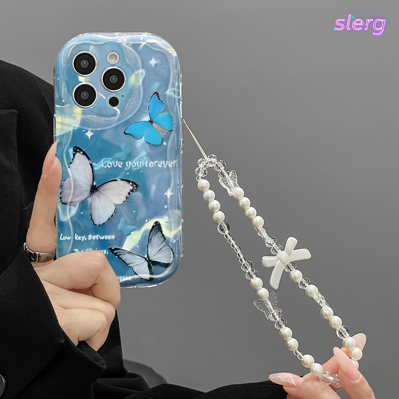A fashionable trendy butterfly print, and a thick shockproof phone case with a unique design, cute print with a lanyard chain phone protection case suitable for Apple series 11, 12, 13, 14, 15, 16 Pro Max and Samsung series.