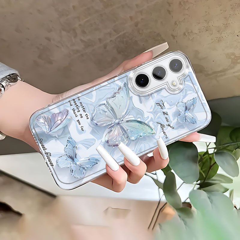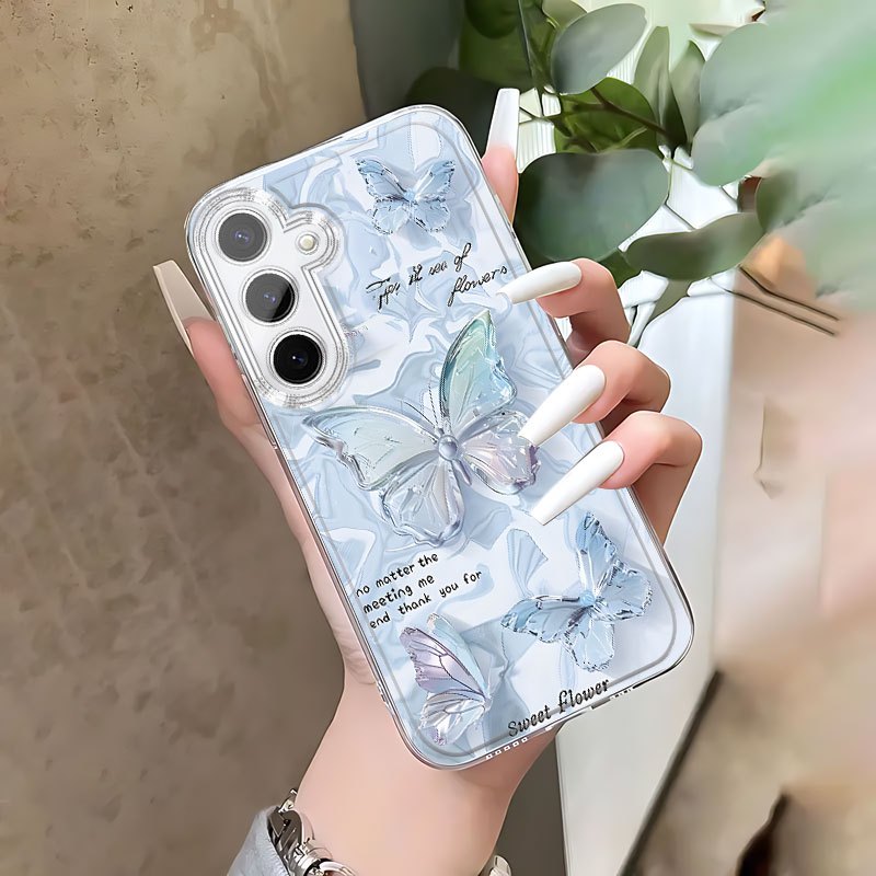 Beautiful Butterfly Phone Case Suitable for Samsung Galaxy A02 A03S A04 A05S A06 A13 A14 A15 A16 5G A21S A22 A23 A24 A25 A26 A32 A34 A35 A36 A50 A52 A53 A54 A55 A56 A73 S21 Ultra S22 Plus S23+ S24 FE S48 Cartoon Transparent Anti-Fall Full Coverage TPU Soft Shockproof Protective Creative Fashionable Shell