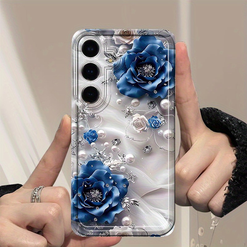 Blue Bewitching Rose Pearl Phone Case for Samsung for galaxy A02 A03S A04 A05S A06 A13 A14 A15 A16 5G A21S A22 A23 A24 A25 A26 A32 A34 A35 A36 A50 A52 A52 A53 A54 A55 A56 A73 S21 Ultra S22 Plus S23+ S24 FE S25 Cartoon Transparent Dropproof All-Inclusive TPU Phone Case Simple Fashion Shockproof Softshell Protective Case Trend New Pattern Ideas, Shopping Holiday Decoration Style Brings Fashion Grasp The Trend Earn Reward Consume And Have In As Autumn Moves Into Gifts Perfect Tools