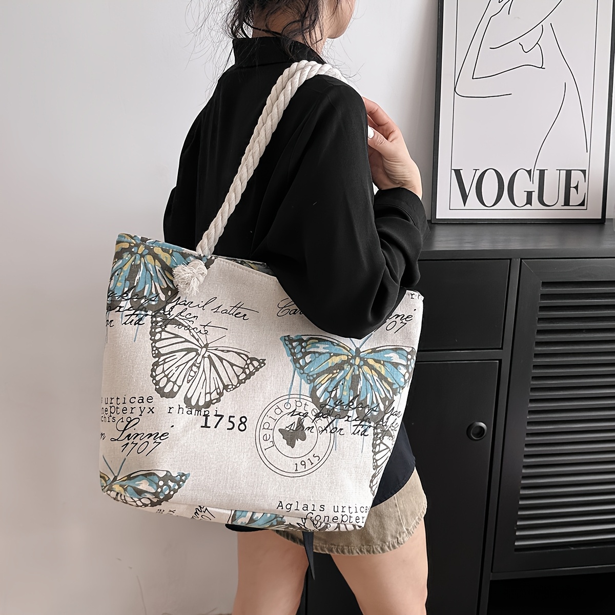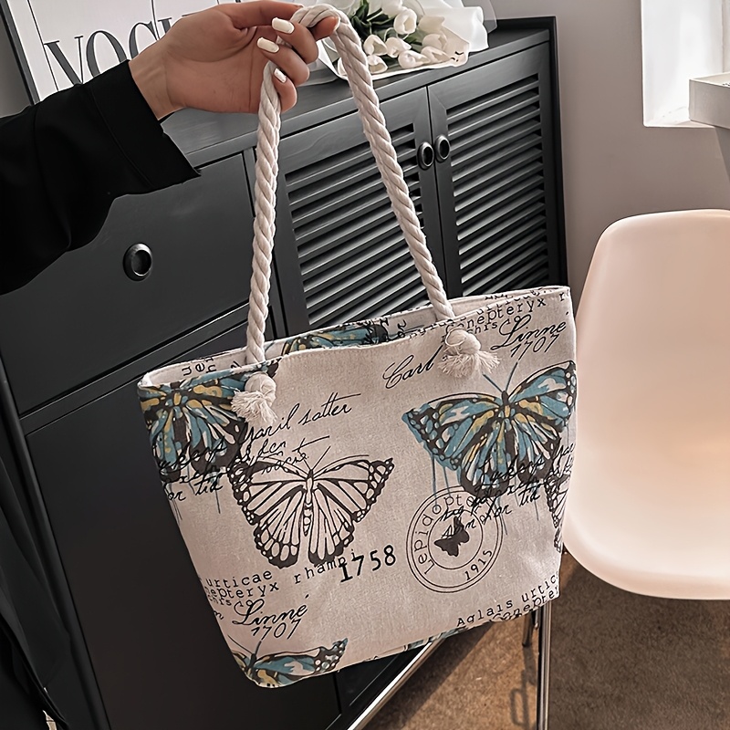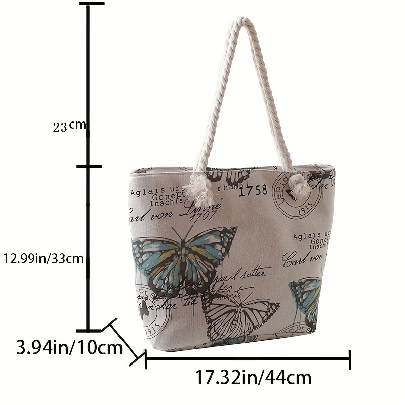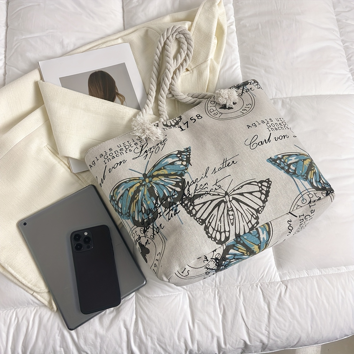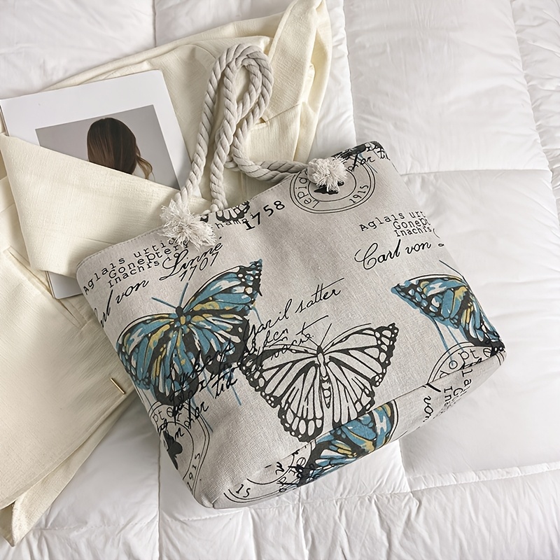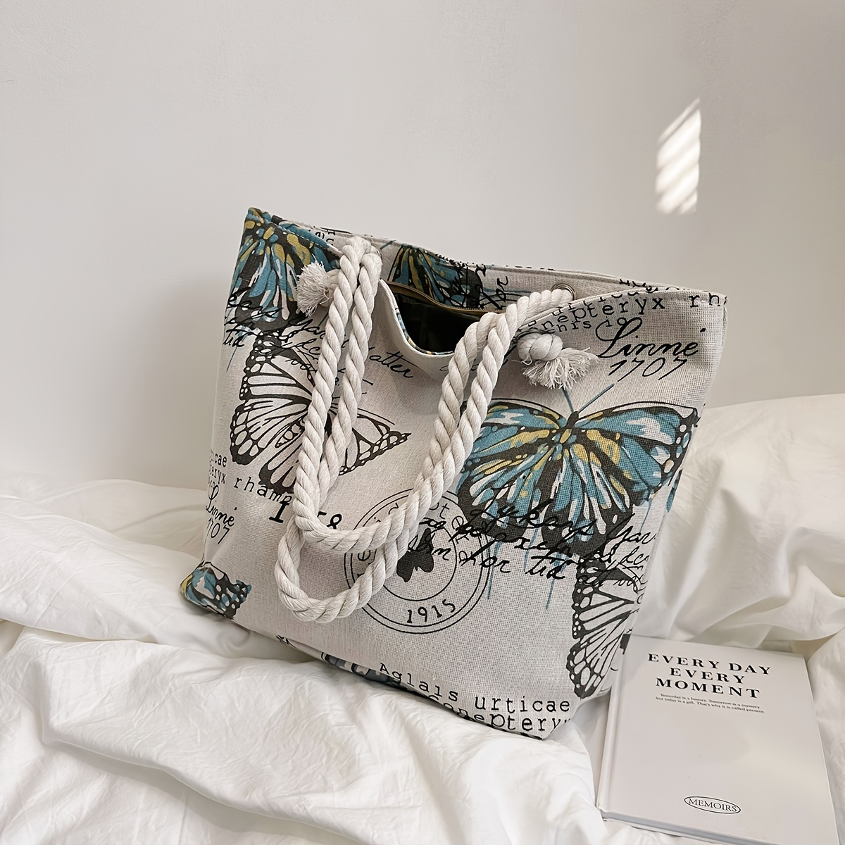 Butterfly Pattern Tote Bag, Marine Life Pattern Travel Beach Bag, Lightweight Summer Vacation Shoulder Bag