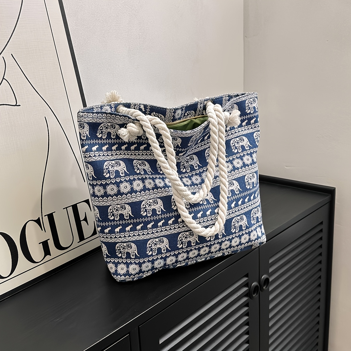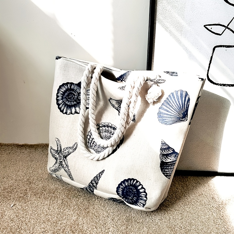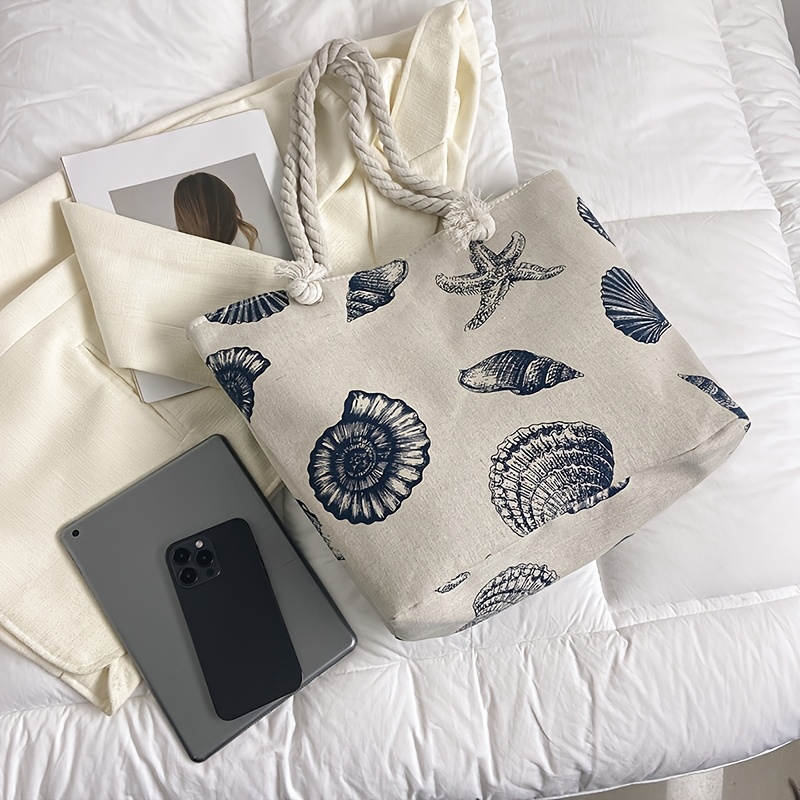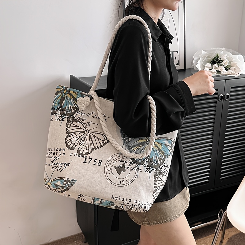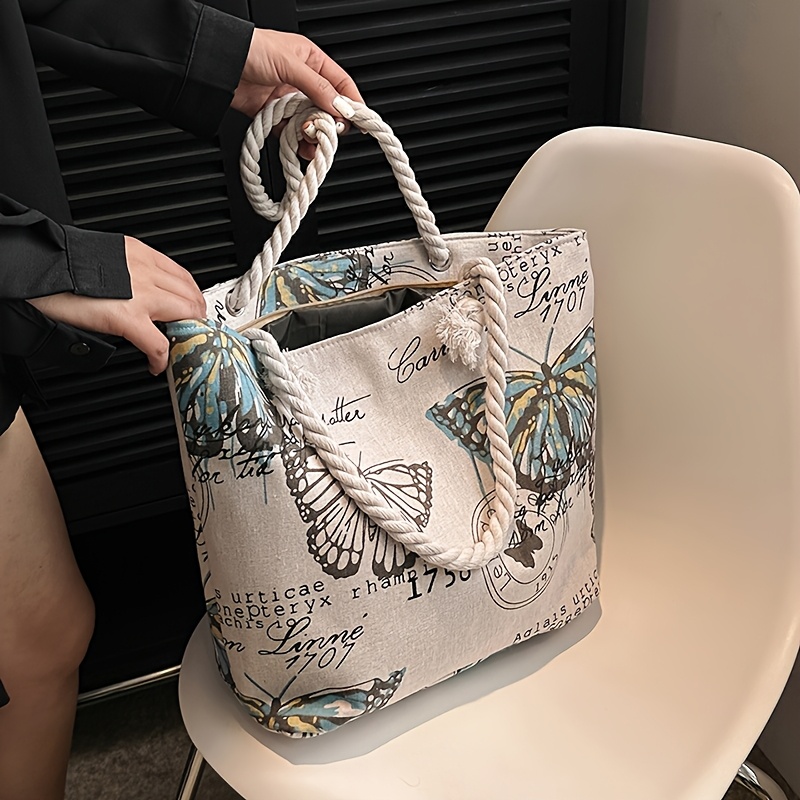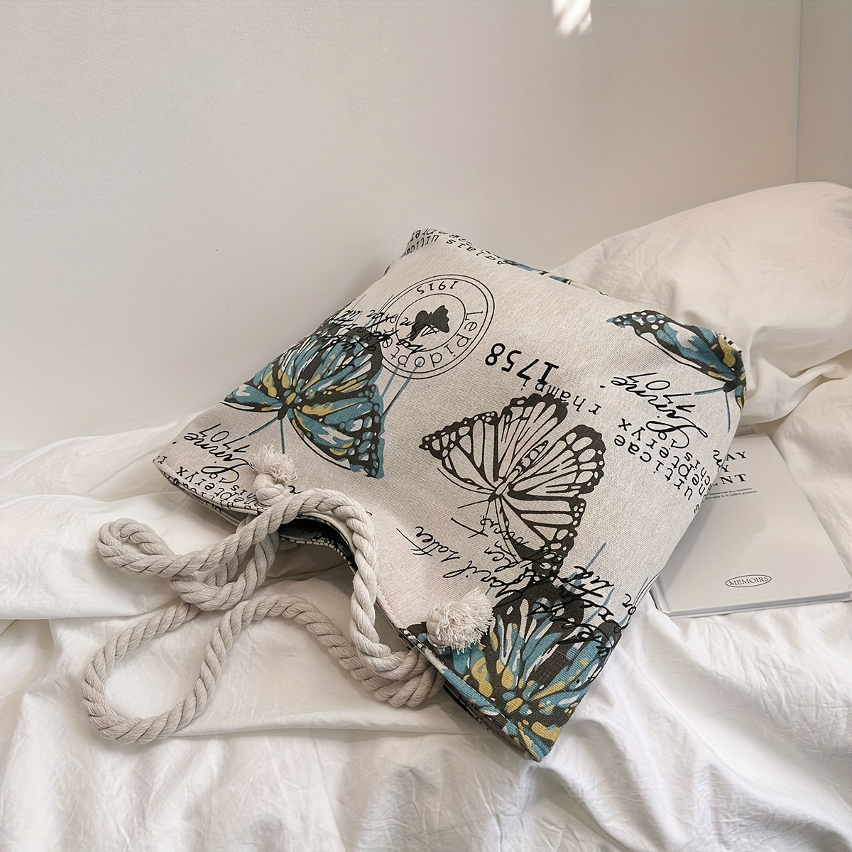 Butterfly Pattern Tote Bag, Marine Life Pattern Travel Beach Bag, Lightweight Summer Vacation Shoulder Bag