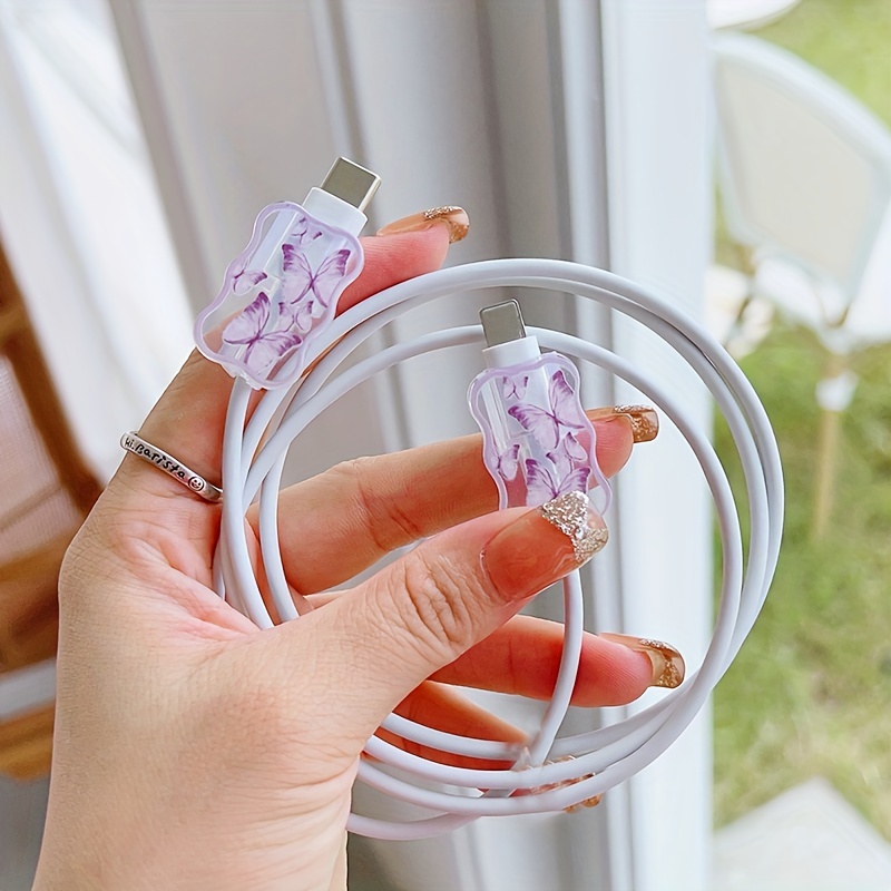 Butterfly Pattern TPU Charger Case, 20W Data Cable Protector, Transparent Phone Accessory, Anti-Breakage Charger Head Cover for UK/Portuguese Version