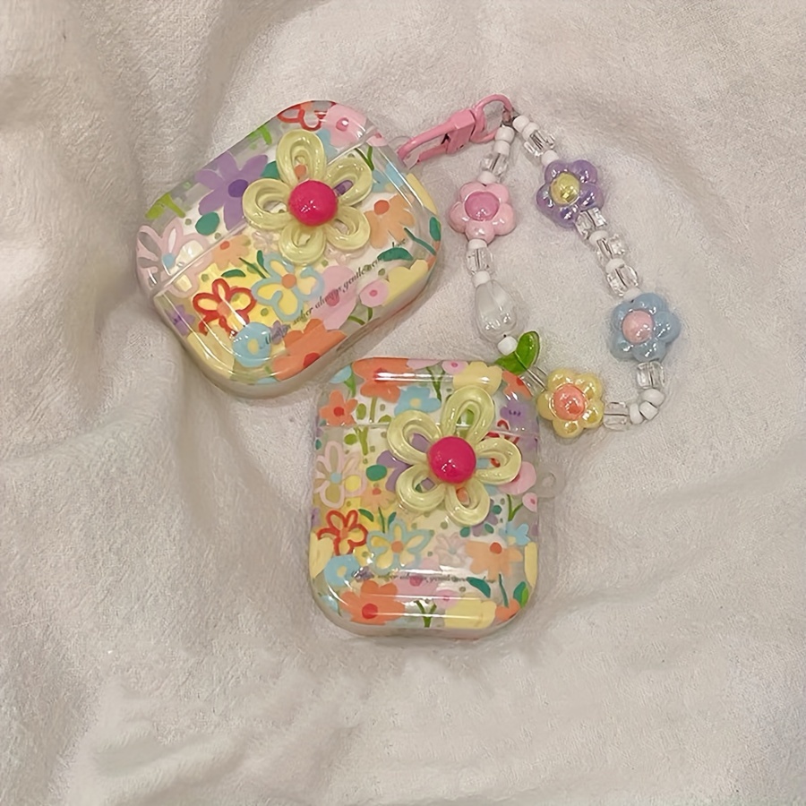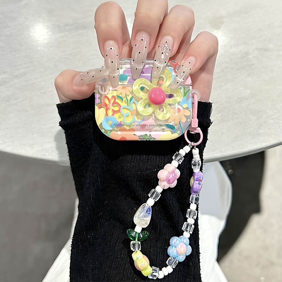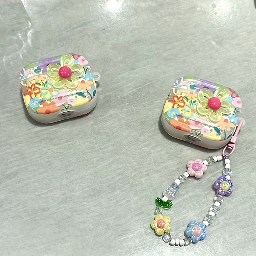 Colorful Flower Compatible with AirPods 1/2/3 Generation, AirPods Pro, AirPods Pro2 Earphone Protective Case, Airpods Protective Case with Free Hanging Chain