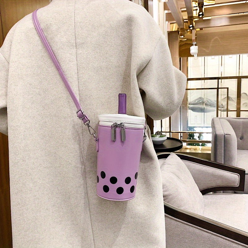 [Cute | Mini] Cute White & Pink Polka Dot Mini Boba Tea Crossbody Bag | PU Design with Adjustable Strap | Small Purse for Women