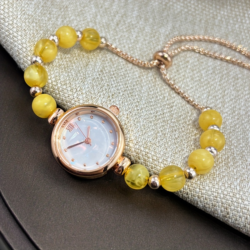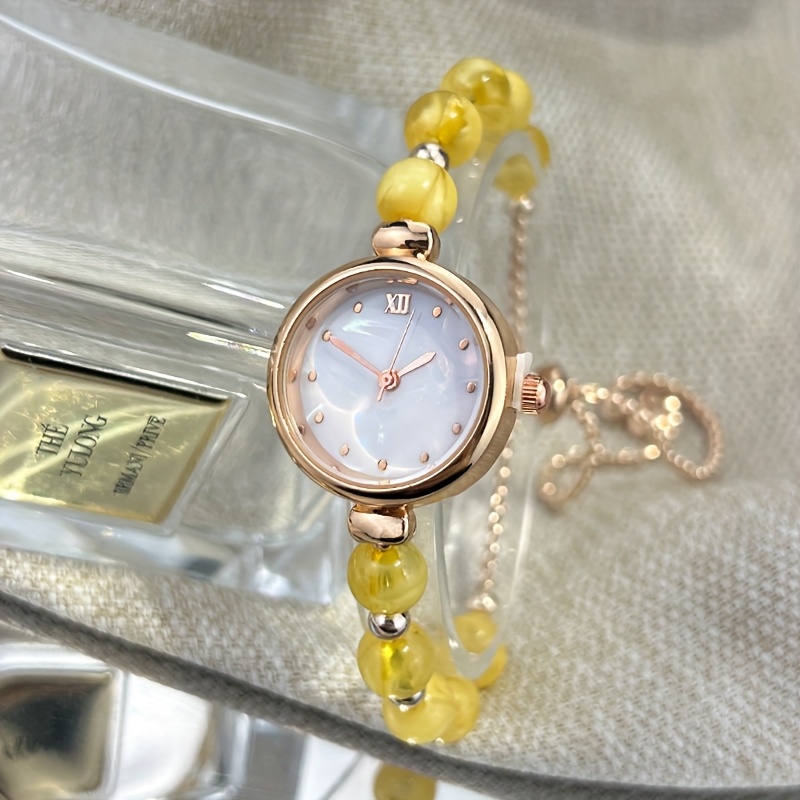Elegant Rose Golden-Tone Women’s Quartz Watch with White Bracelet, Vintage Style Analog Display, Non, Alloy Case & Band, Perfect for Casual or Formal Occasions, Fashion Timepiece | Vintage Watch | Roman Numeral Markers