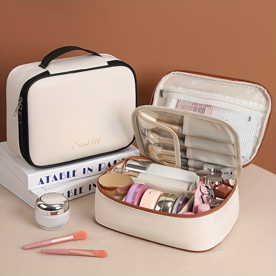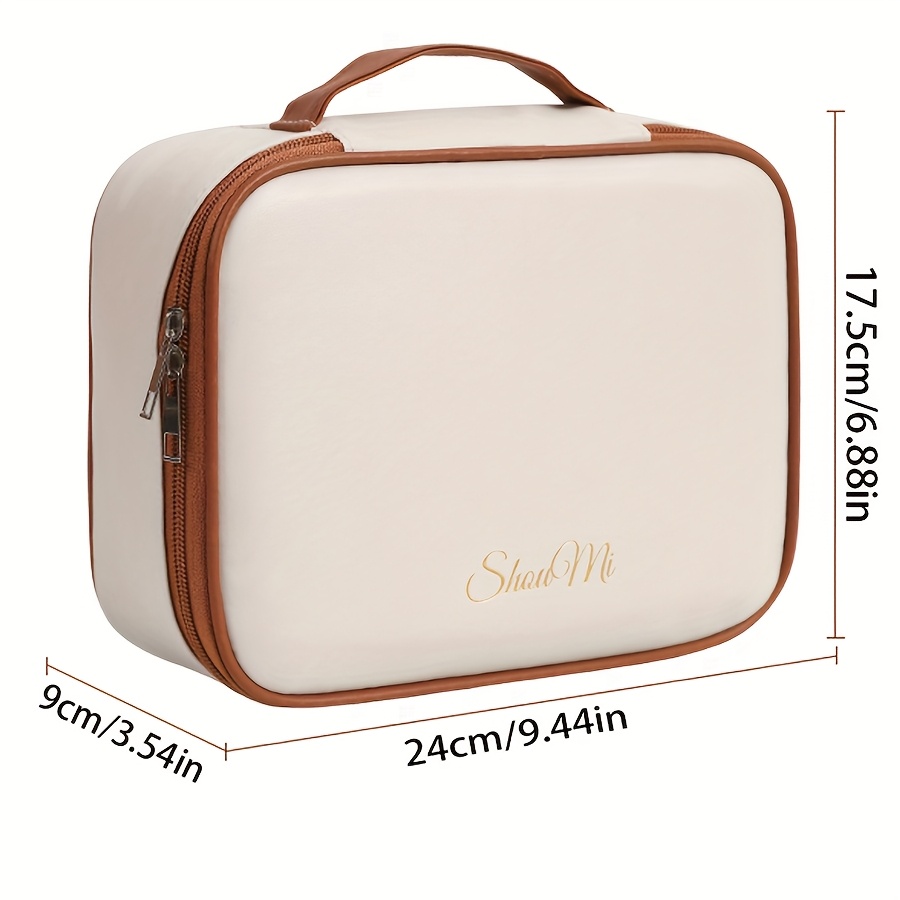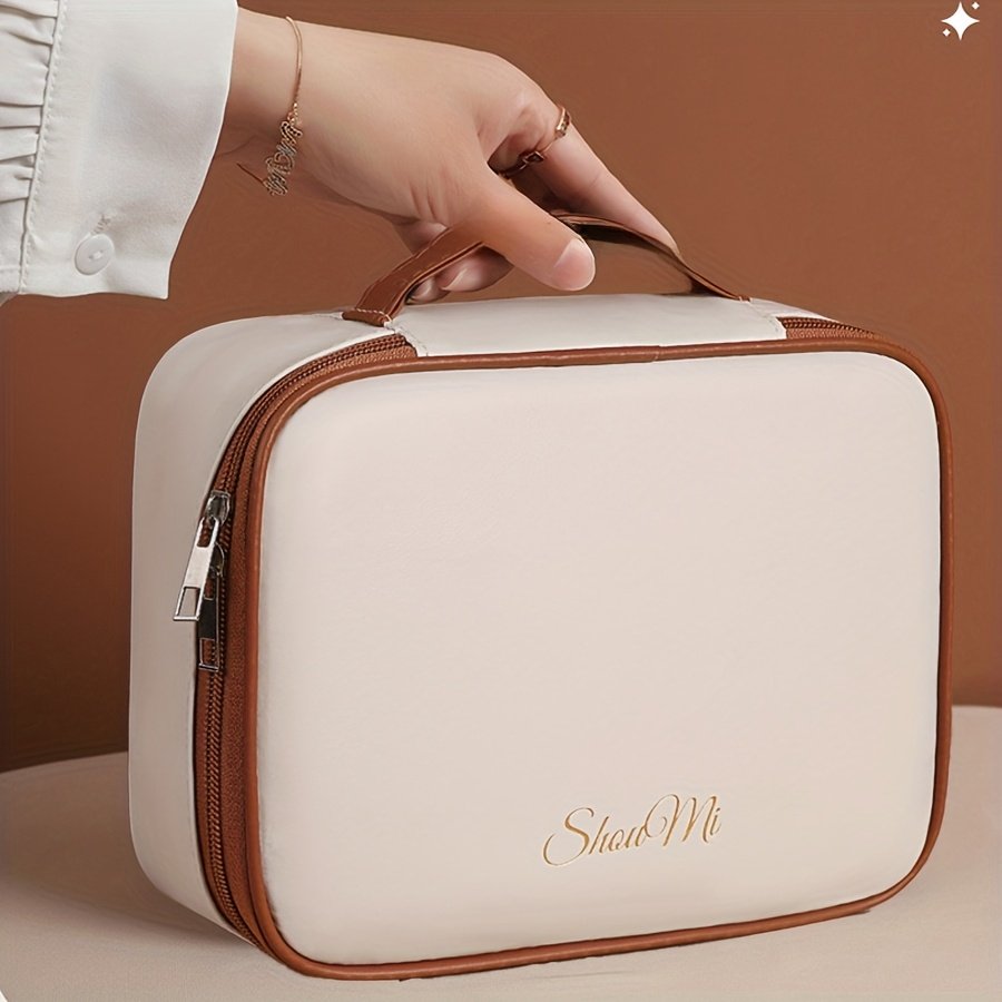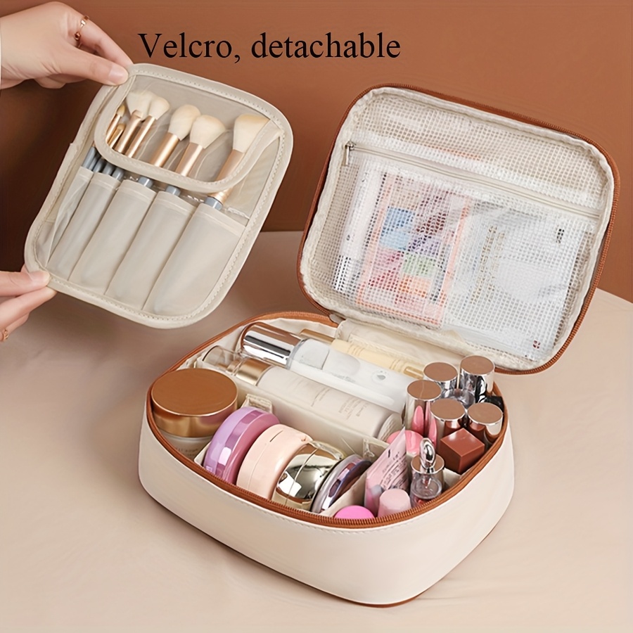 Large Capacity PU Handheld Makeup Bag – Portable Cosmetic Organizer with Detachable Brush Holder, White, Ideal for Lipstick, Perfume, Skincare, and Makeup Tools, Perfect Holiday Gift, Makeup Brush Holde