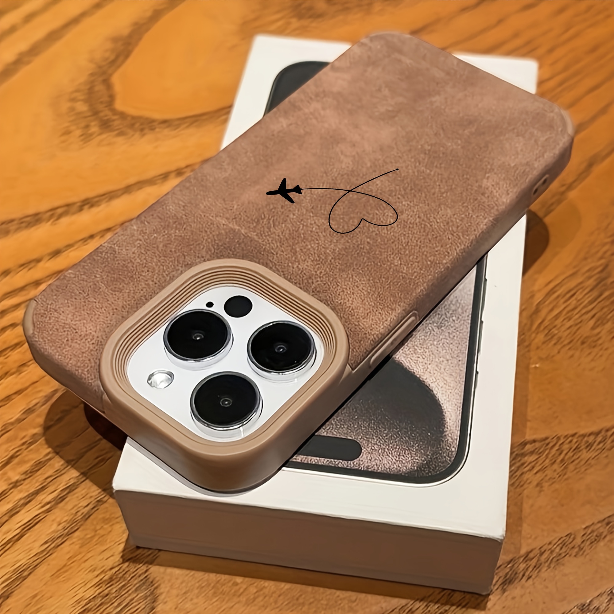 Love Aircraft Suitable for iPhone 16 ProMax/15/14/13/12/11 Phone Case, Imitation Faux Leather texture, shock-absorbing and anti-scratch, creative and fashionable, lightweight and high quality, a festive gift for friends and families