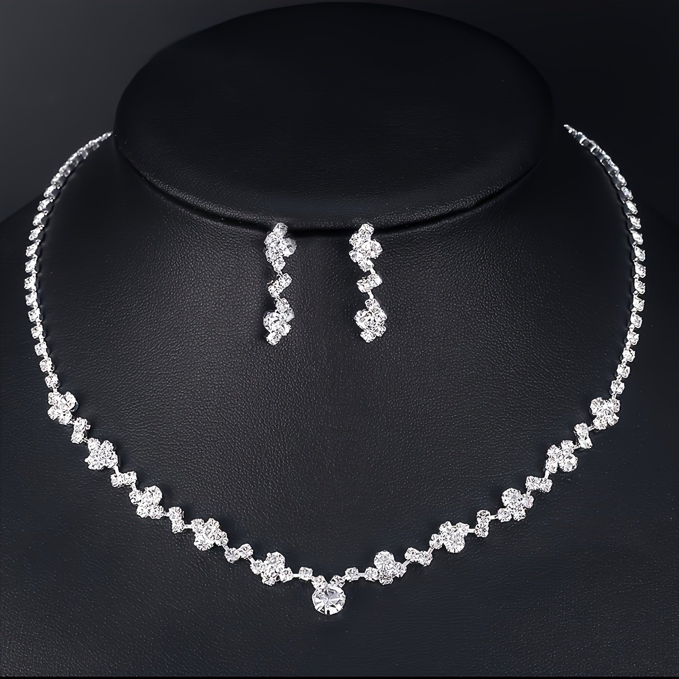 New Elegant Wedding Necklace, Earrings, And Bracelet Set for Brides, Perfect Accessories for Wedding Dresses.