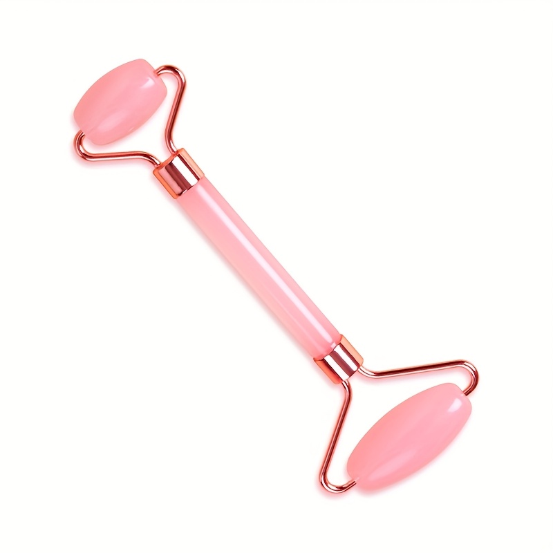 1pc Pink Rose Quartz Face Roller Face Roller Facial Beauty Device Pink Crystal Double Head Roller Face Eye Massager Hand Push Face Eye Scraping Massage Stick