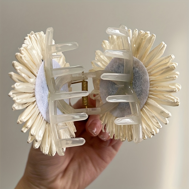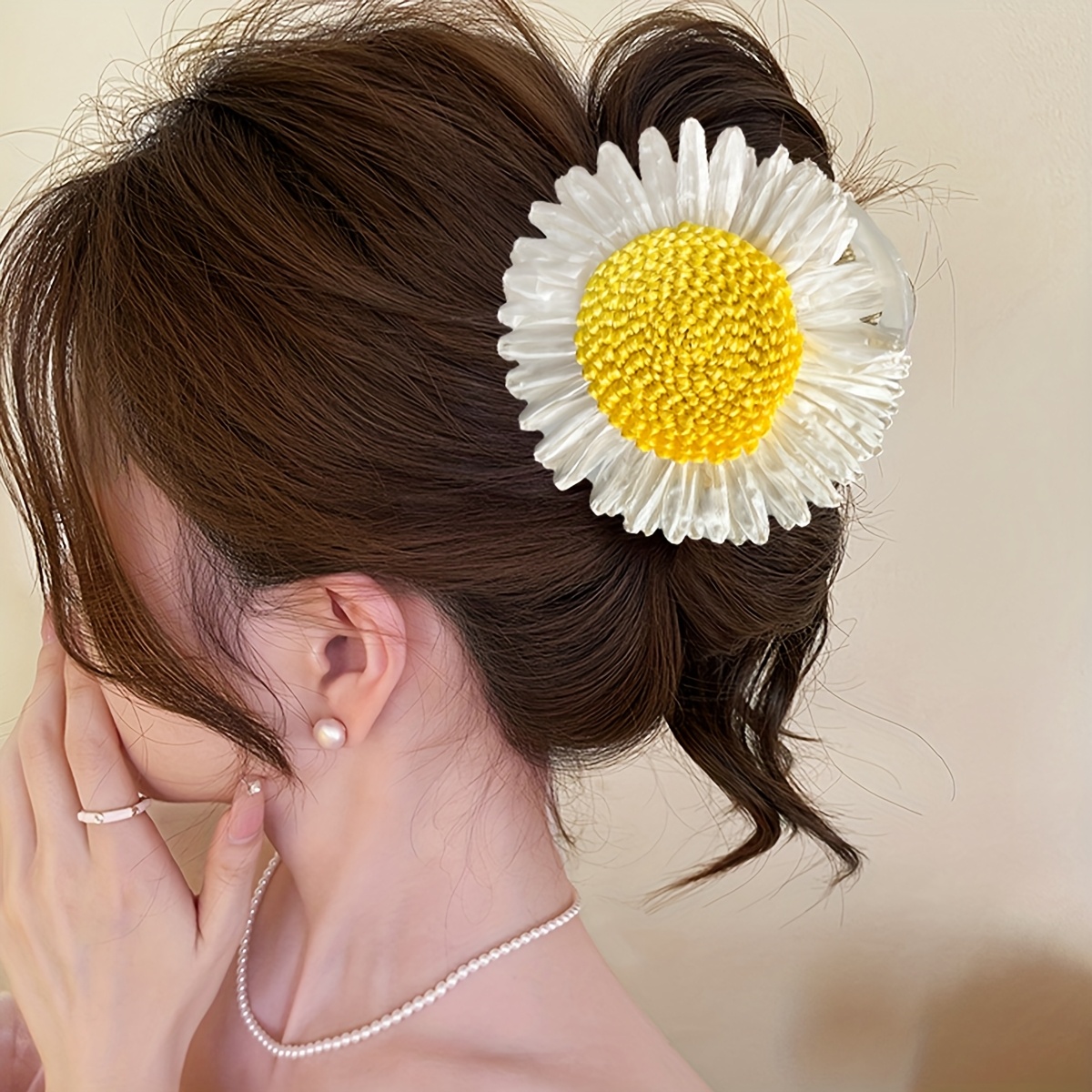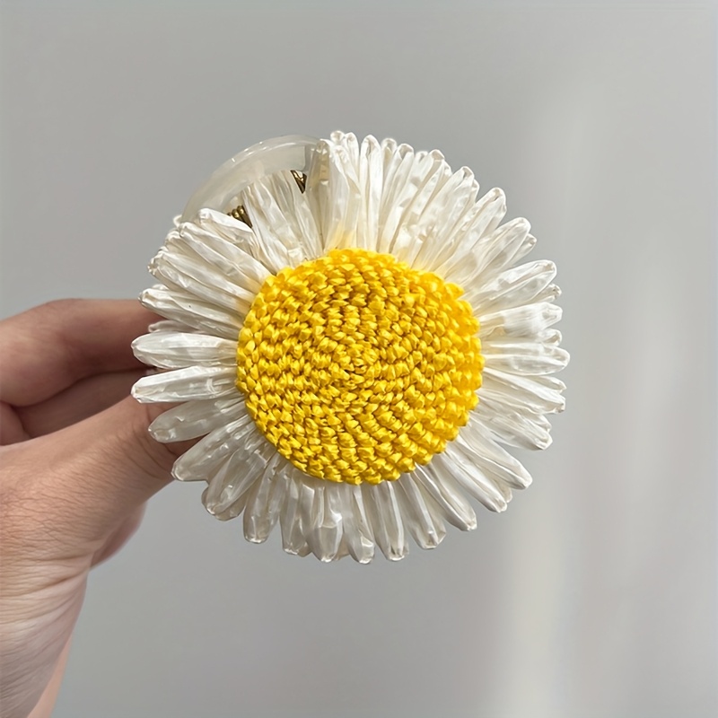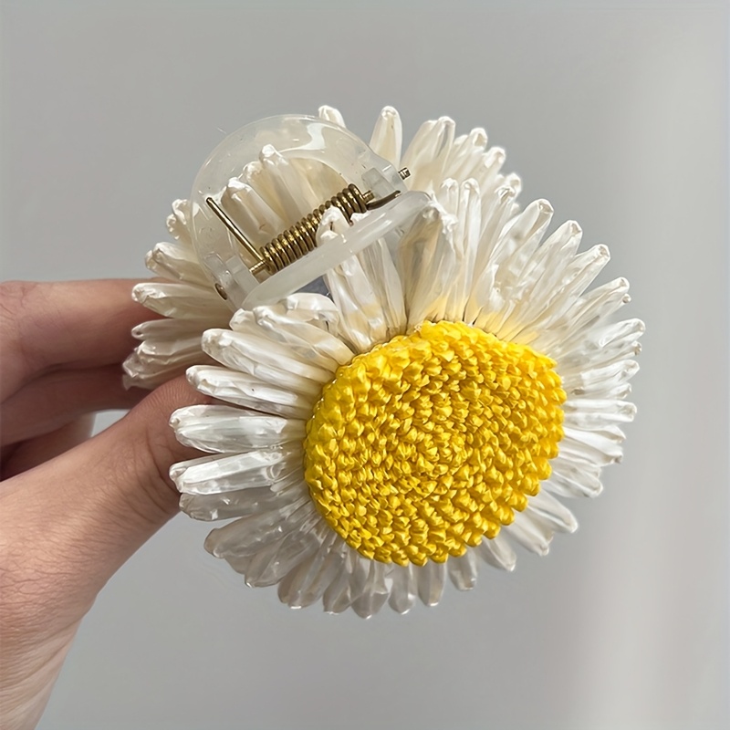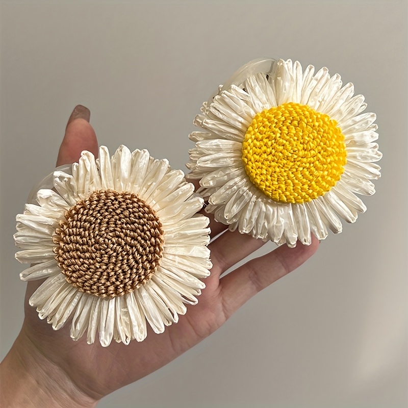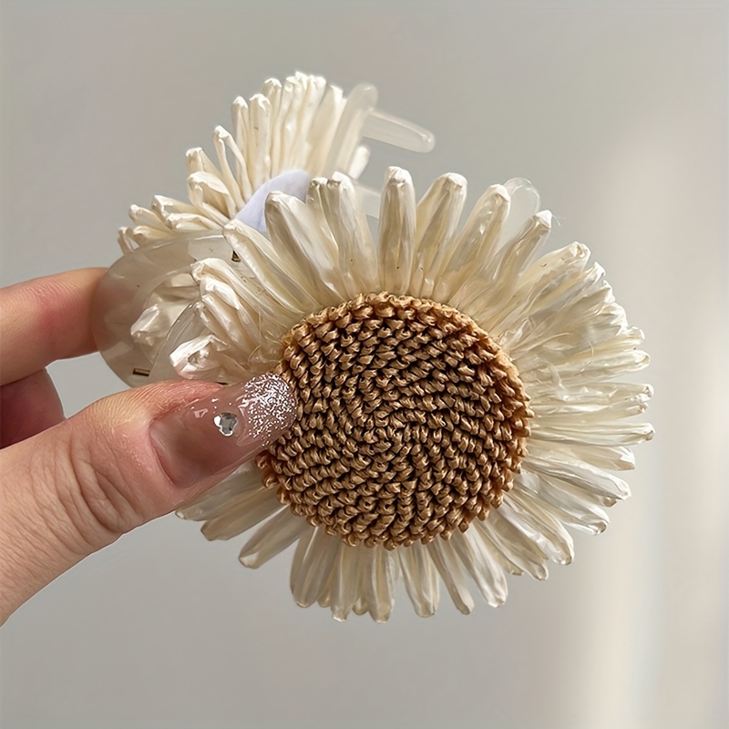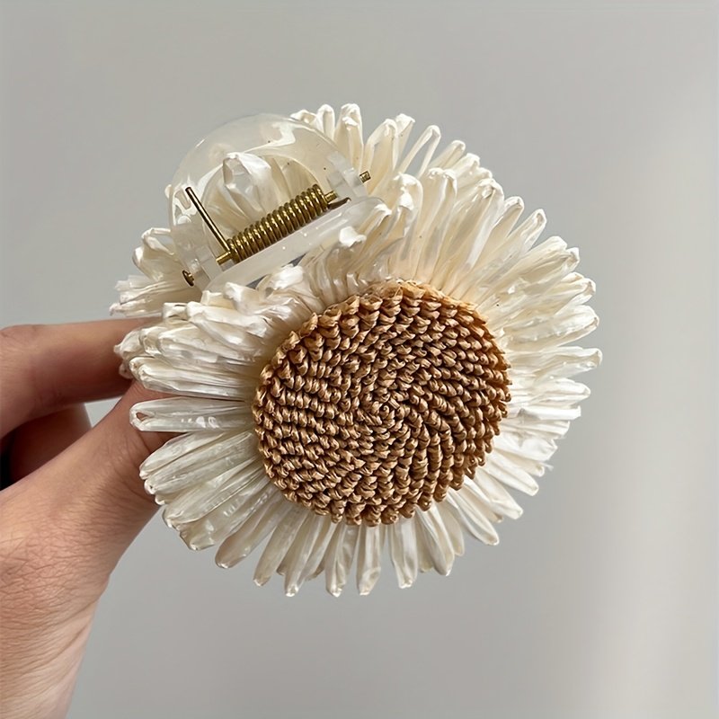 Tangerine, Green, Yellow Pistil Sunflower Grab Clip, Khaki Flower Stamen Sunflower Hair Grab, Yellow Petal Khaki Stamen Sunflower Claw, Sunflower Hairpin, Khaki, Black, Red