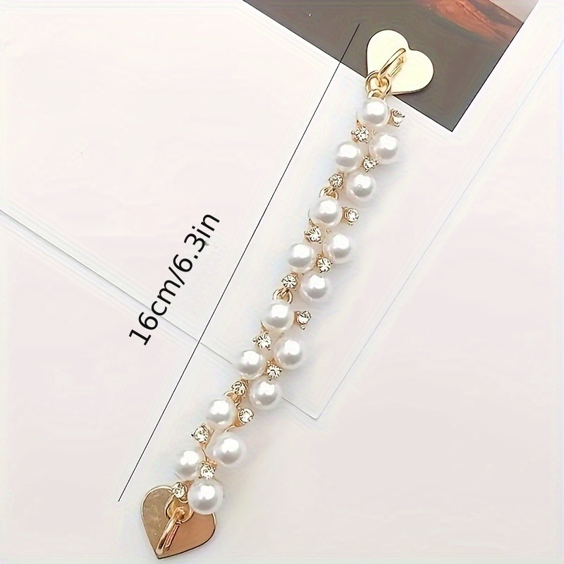 Stylish Acrylic Beaded Phone Lanyard with Golden Heart Charm—Multifunctional Phone Case Bracelet Set Including Tape, Ideal Gift for Women