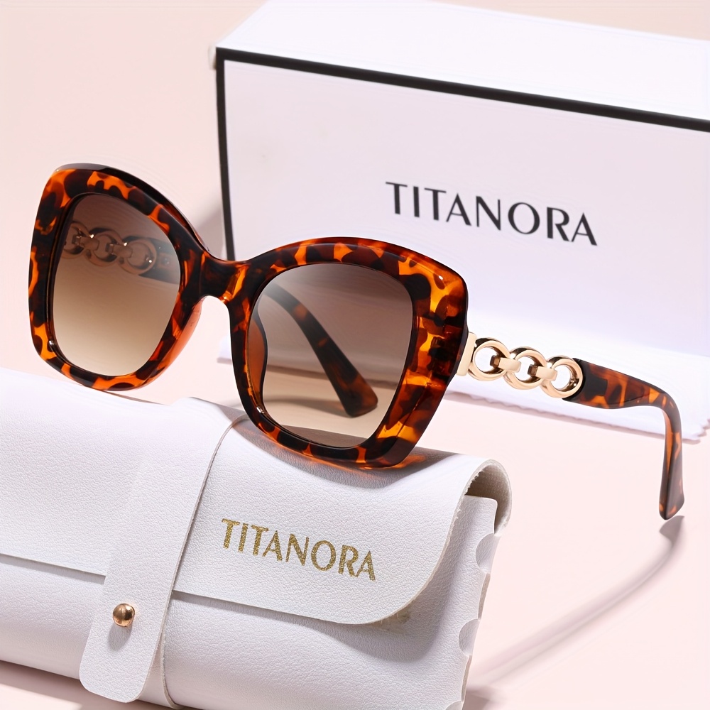 TITANORA Women’S Large Frame Fashion Glasses Chain – Cat Eye Design, Polycarbonate Frame with Metal Hinges, Decorative Eyewear for Casual Attire & Everyday Use, Stylish Accessory, Sleek Eyewear, Durable Eyewear