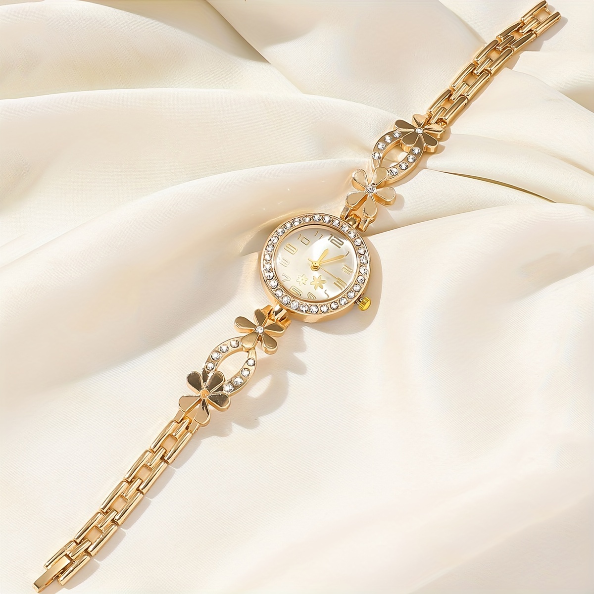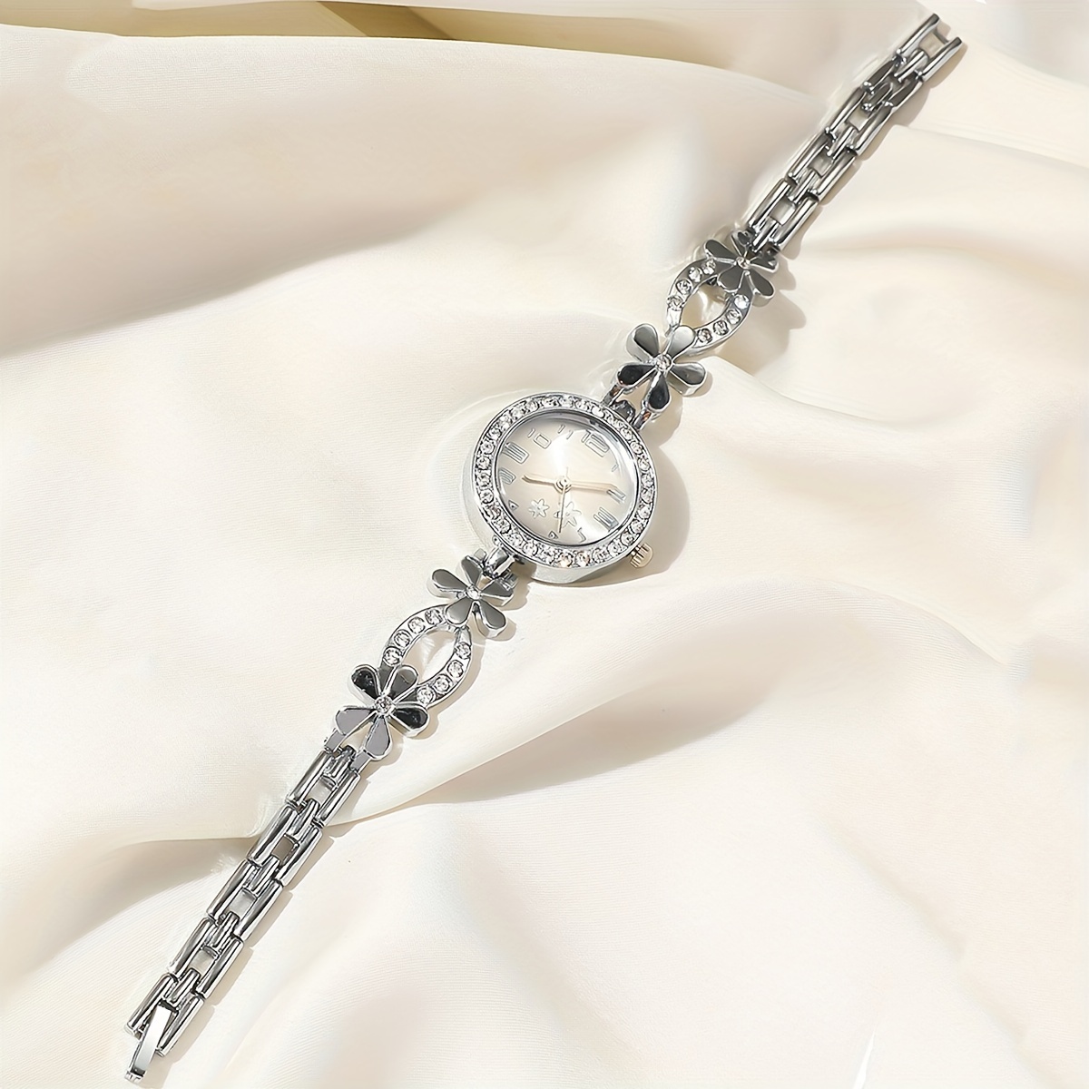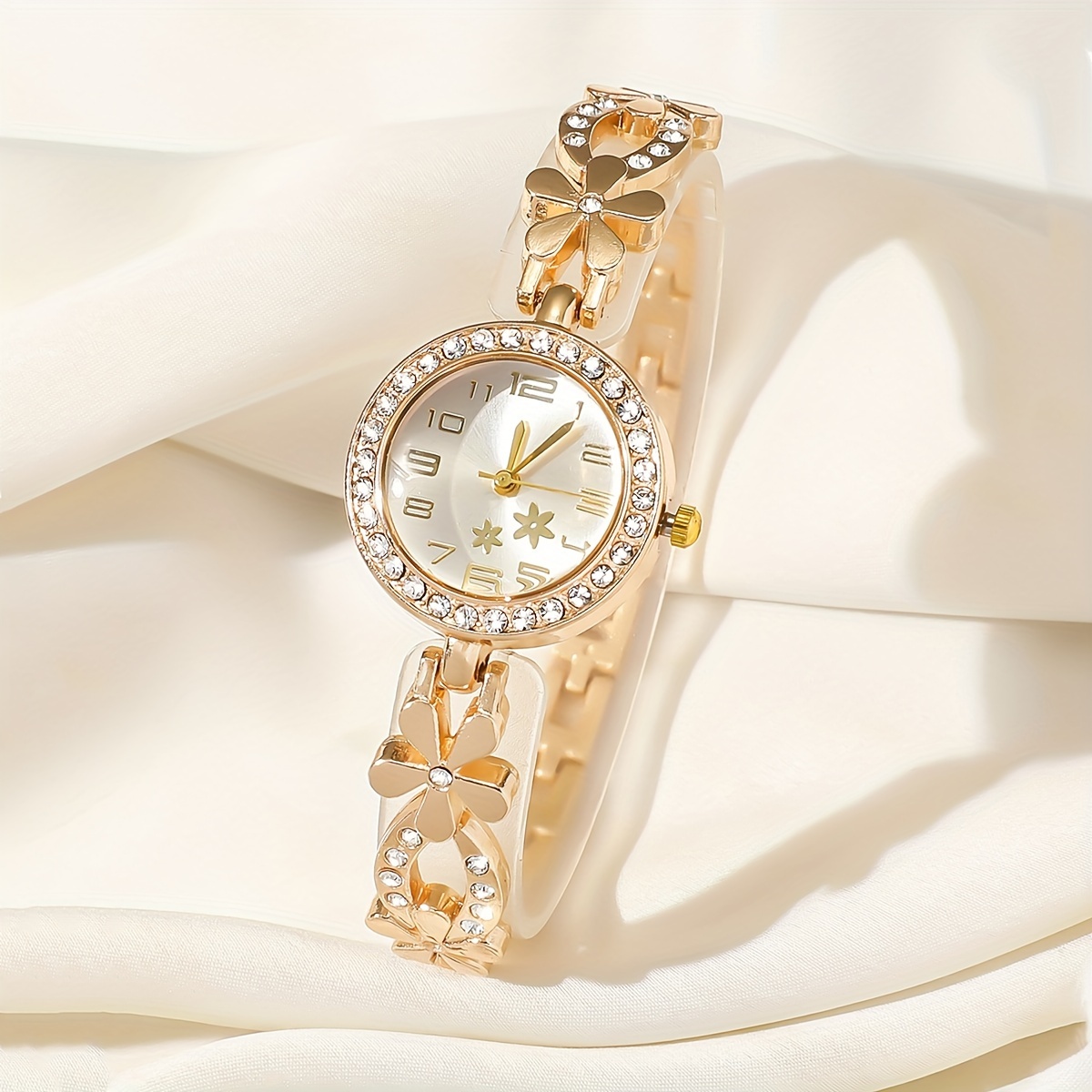 Women’s Rhinestone Flower Design Bracelet Watch, Perfect for Birthday Gifts and Casual Attire